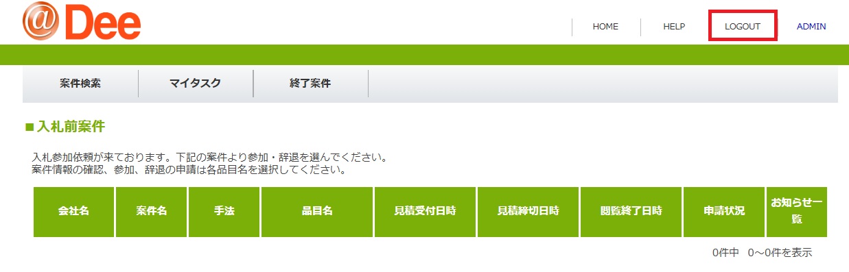 @Dee画面にログインし、【案件検索】タブにて案件を検索することもできます。
